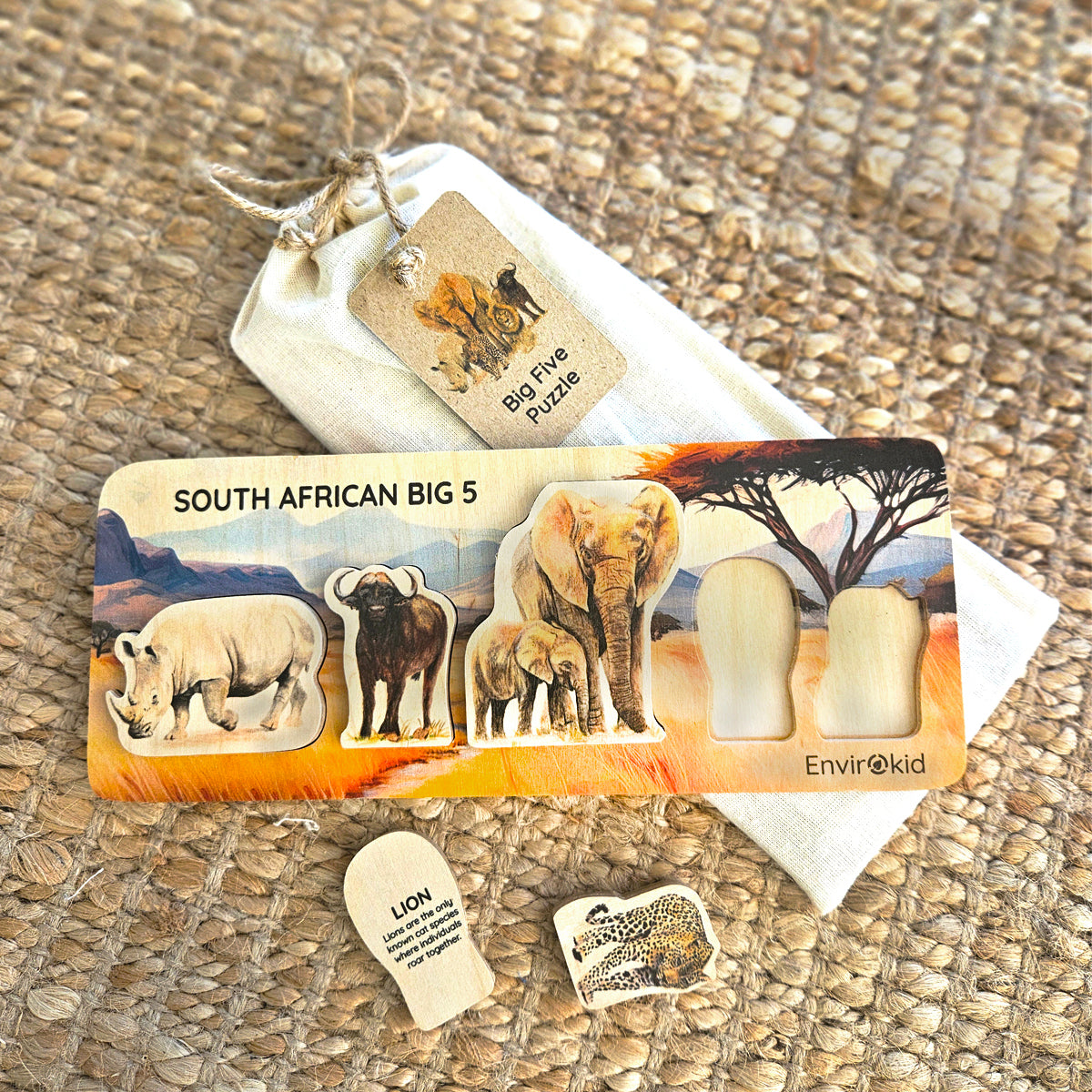Crafted from Birchply wood, each piece is smooth, durable, and safe for toddlers. Behind each piece is printed the animals name and an interesting fact