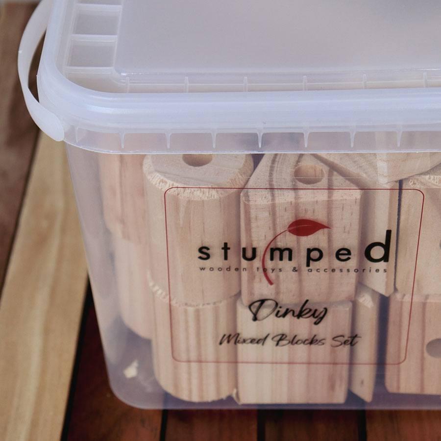 Our Dinky Mixed Blocks Set is the perfect addition to your child's Knock-a-Block building collection - featuring our teeny Dinky Blocks, Rolls and Tris that are designed for "dinky" hands!