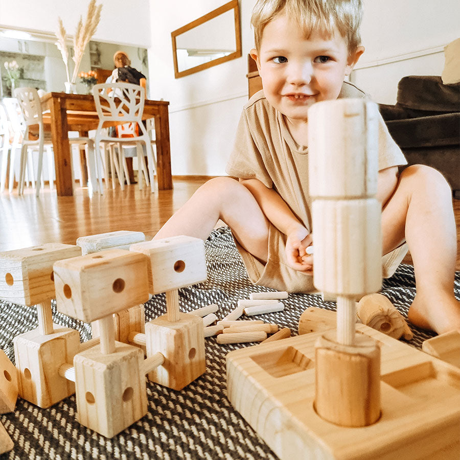 Our building stations provide a foundation for your child's Knock-a-Block play time, teaching shape recognition while simultaneously developing their hand-eye coordination.
